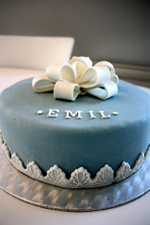 For noen uker siden laget jeg cupcakes og kake til enda en dåp. Småkakene var med smak av vanilje og friske bringebær, toppet med smørkrem. Den store kaken var laget av sjokolade og smørkrem, toppet med sukkerpasta!